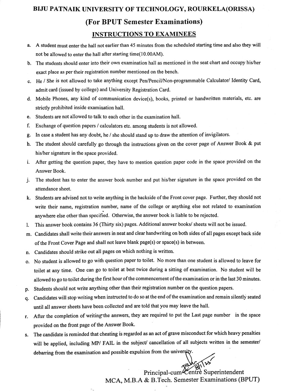 INSTRUCTIONS TO CANDIDATE FOR SEMESTER EXAMINATION |