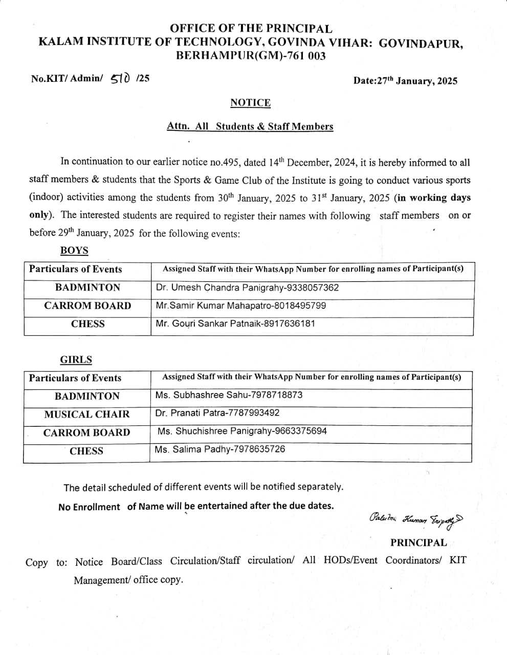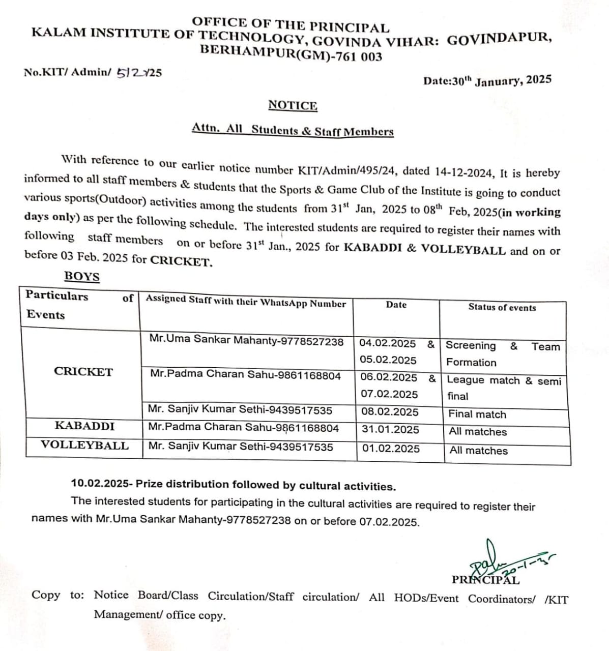 SPORTS NOTICE FOR OUTDOOR GAMES |