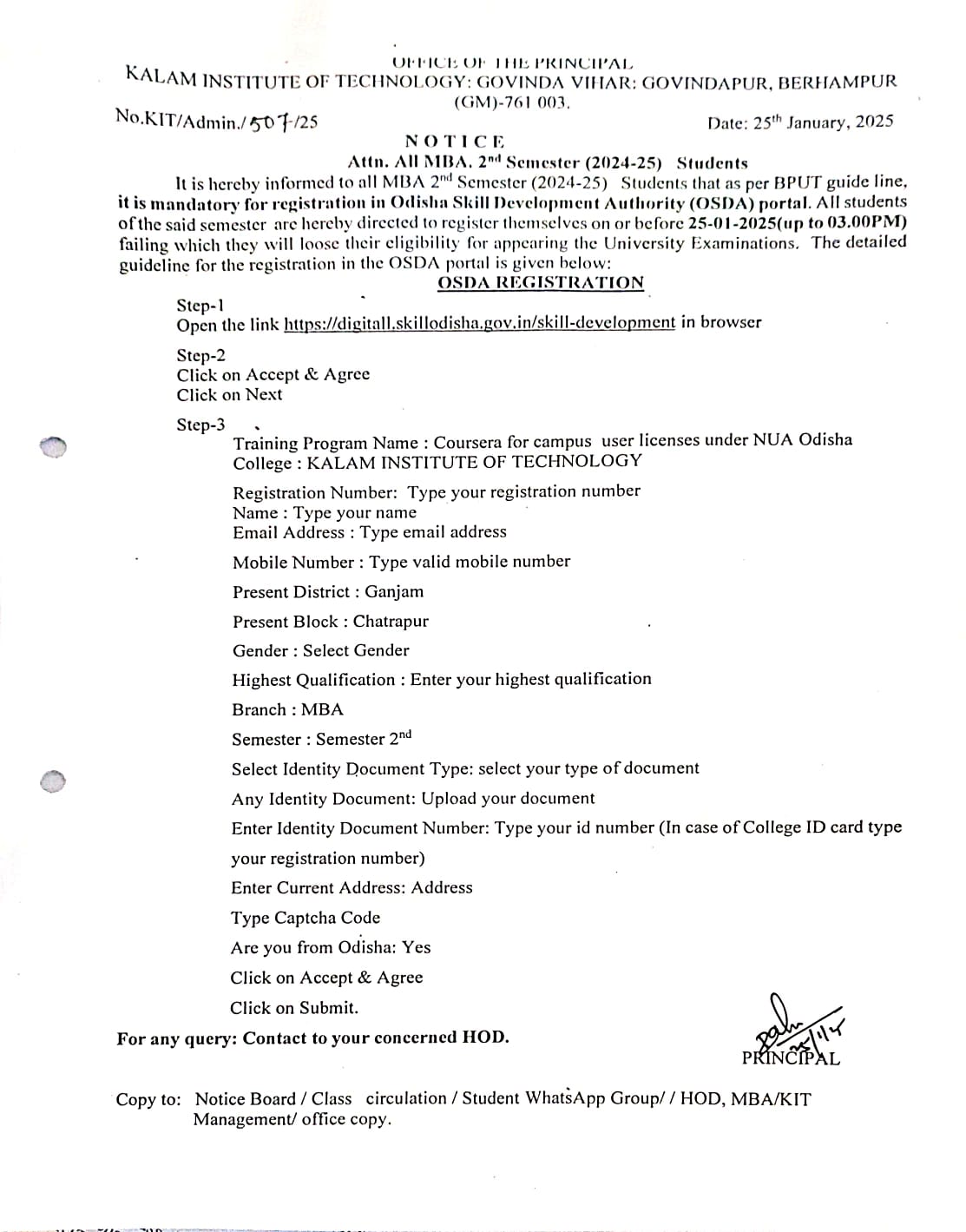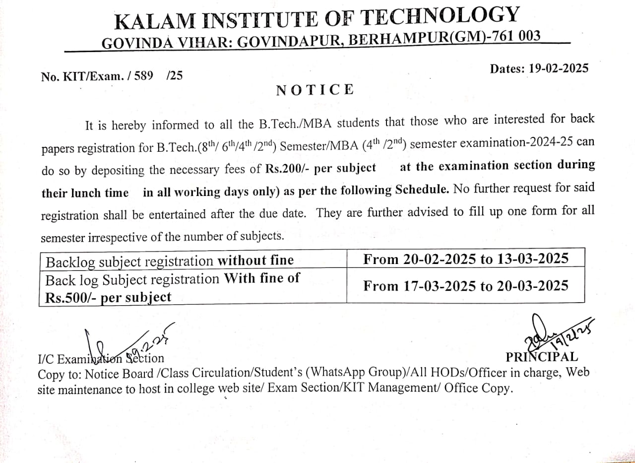 CLASS TEST-1 NOTICE FOR B.TECH 6TH AND MBA 4TH SEMESTER |