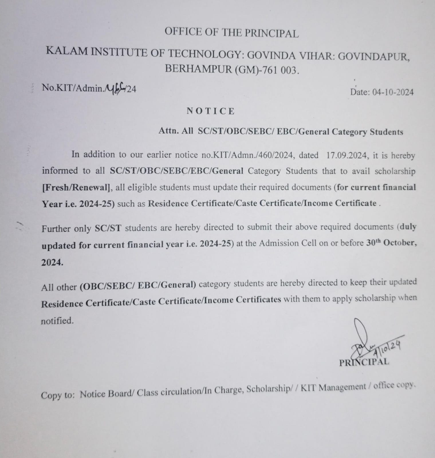 Scholarship fresh/Renewal |