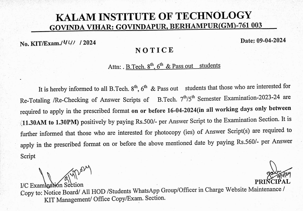 Re-checking for B.tech 6th and 8th semester students |