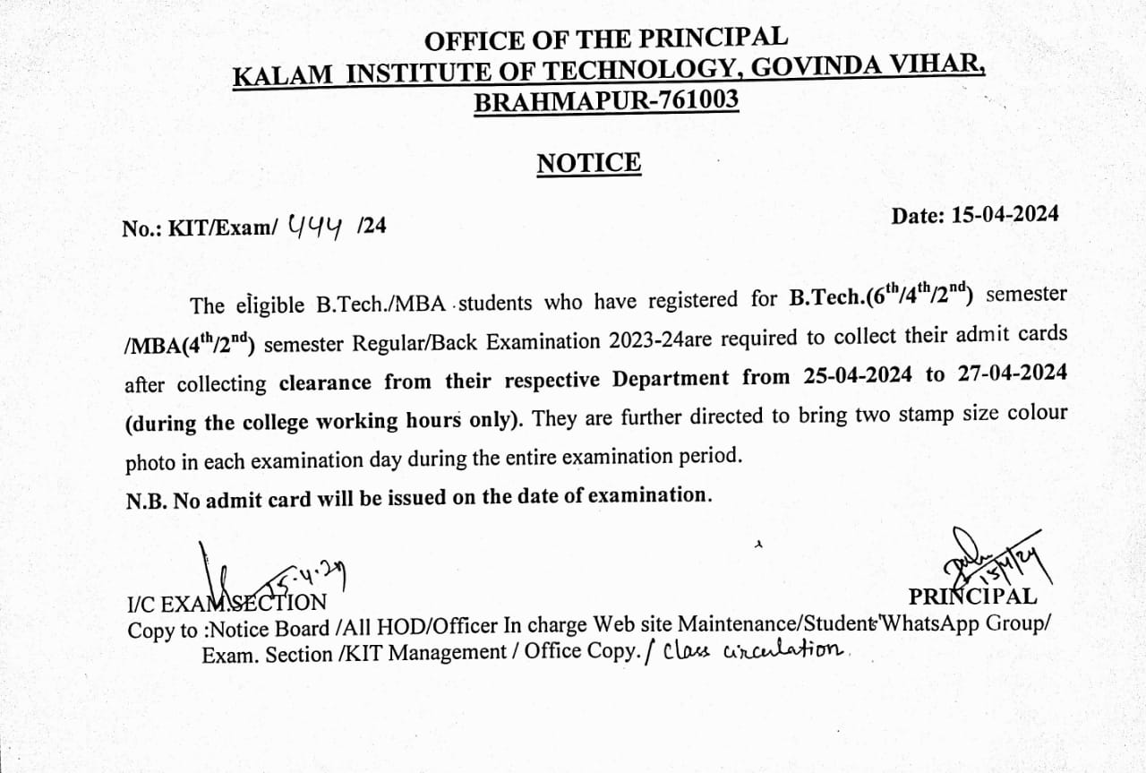 Distribution of Admit Cards of Regular/Back Even Semester Examination |