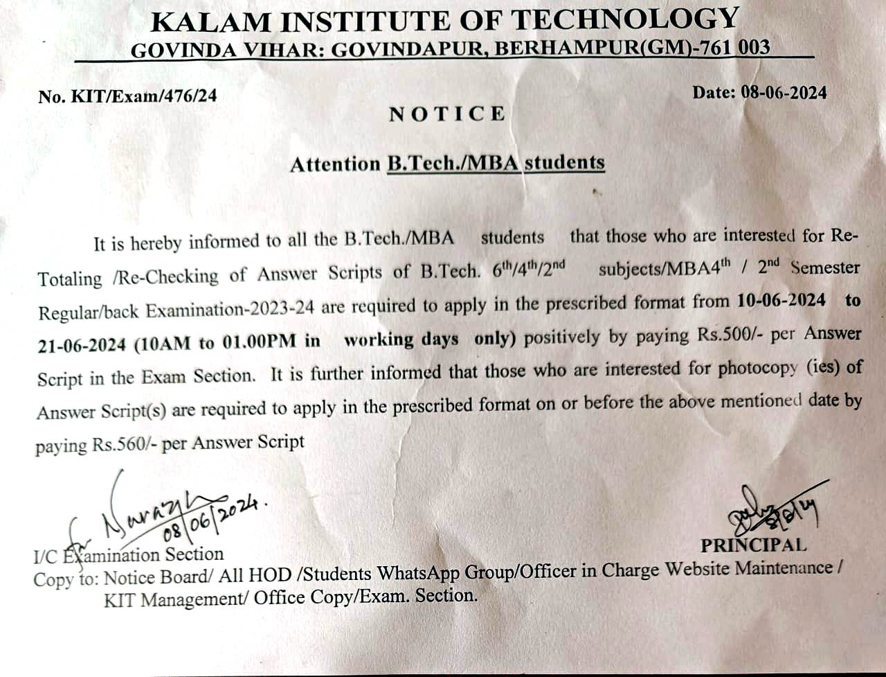 Rechecking/Retotaling for Even Semester (2023-24) Examinations |
