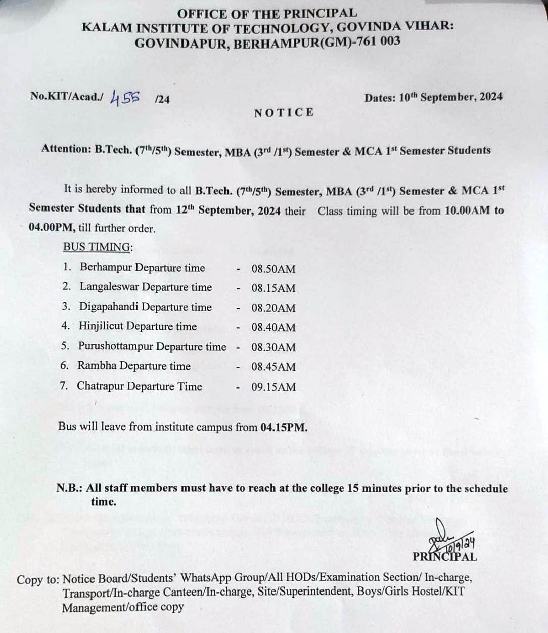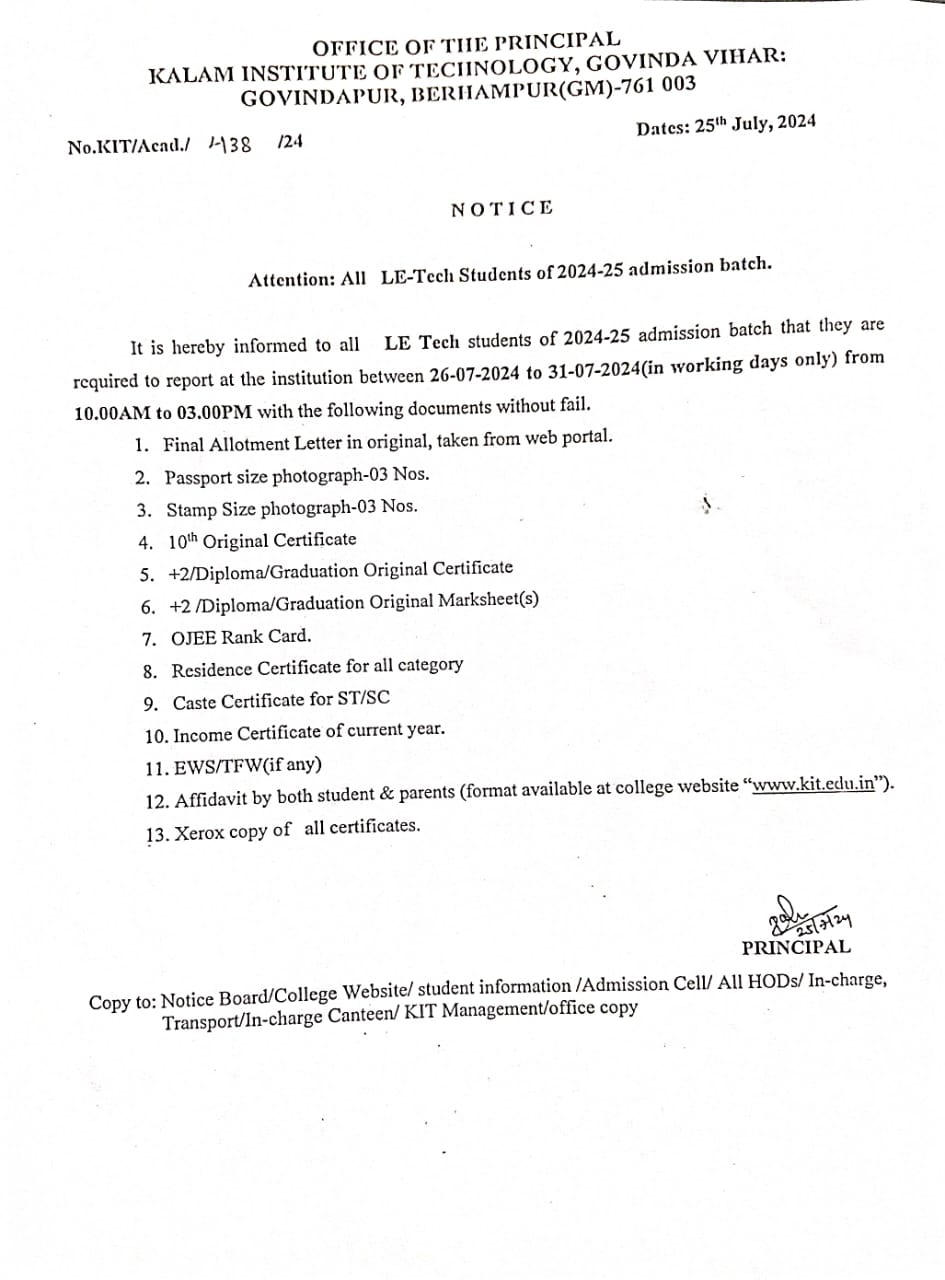 Reporting of B.Tech Lateral Entry Students for the session 2024-25 |
